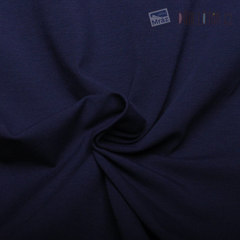 Velmi příjemný úplet v modré barvě. Látka je hladká a poddajná, proto se s ní snadno pracuje. Úplet je vhodný na trička, šaty, legíny, čepice i dětský oděv.