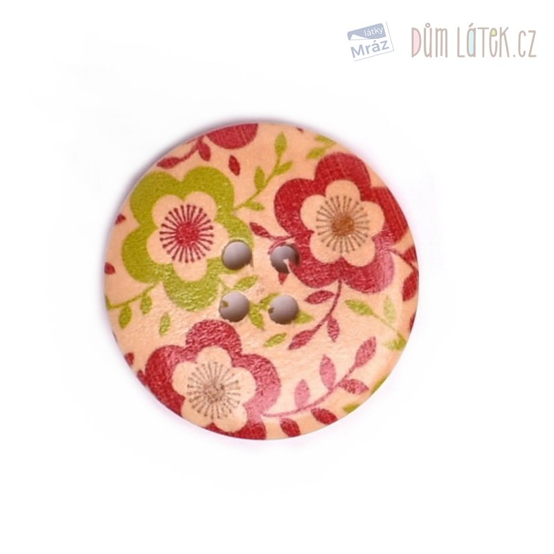 Knoflík s květy, dřevěný
