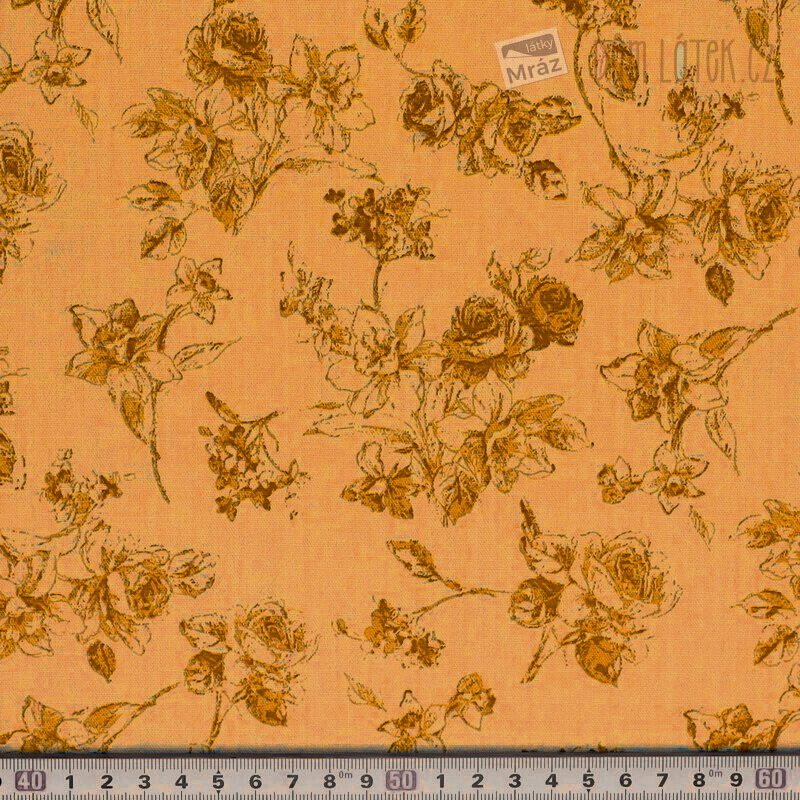 Kostýmová látka bavlněná s květy, okrová