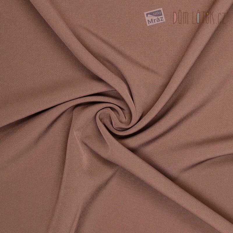 Kostýmová strečová látka s jemnou strukturou v hnědé barvě je příjemná, pevná a pružná převážně po šířce.