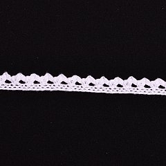 Paličkovaná krajka je vyrobena z bavlny a zdobena zajímavým zoubkovaným vzorem.