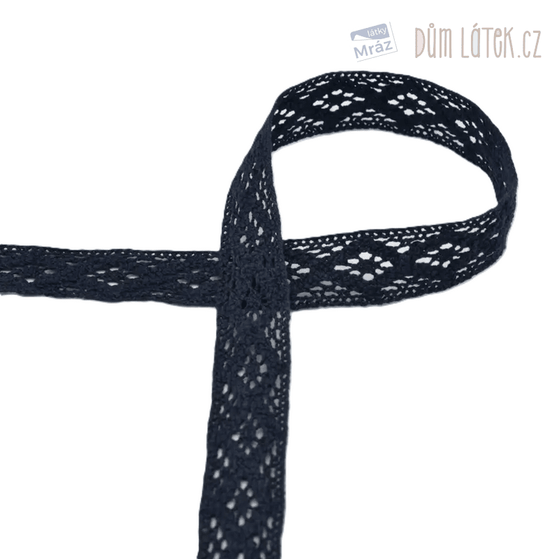 Krajka paličkovaná temně modrá, šíře 20 mm