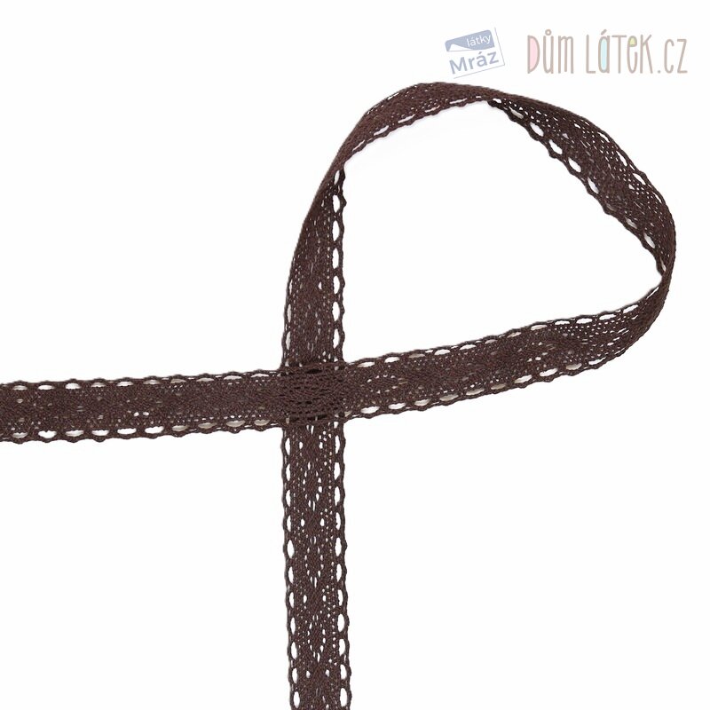 Krajka paličkovaná tmavě hnědá, šíře 25 mm