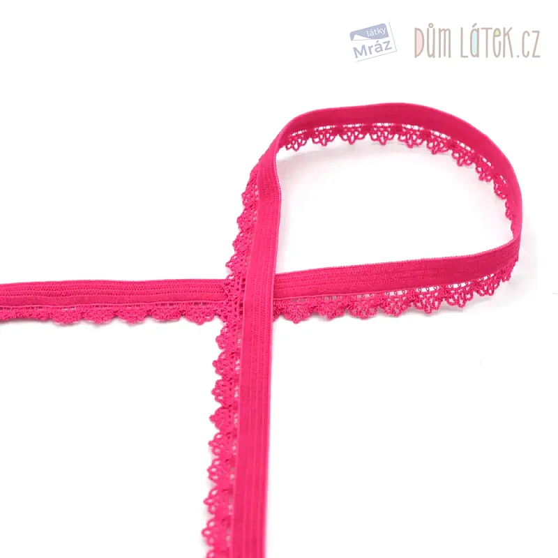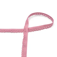 Lemovací ozdobná pruženka s krajkou, růžová, šíře 12 mm