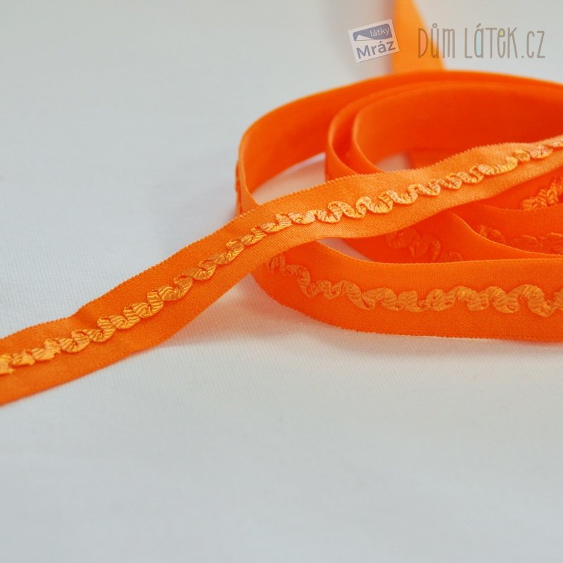 Lemovací pruženka ozdobná oranžová, lze našít rozloženou i přeloženou napůl - ozdobný prvek bude v kraji