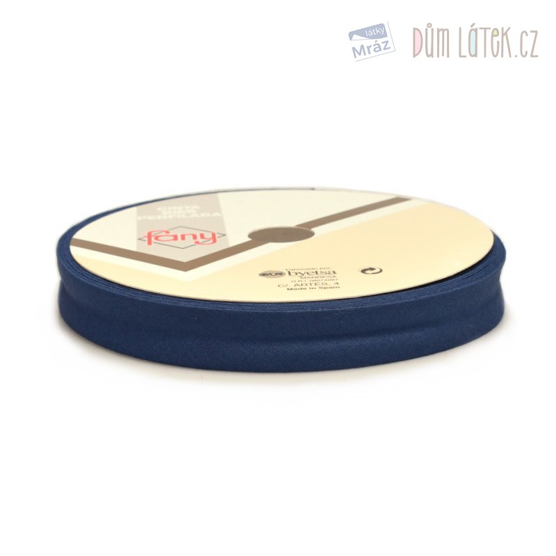 Tmavě modrý bavlněný lemovací šikmý proužek.