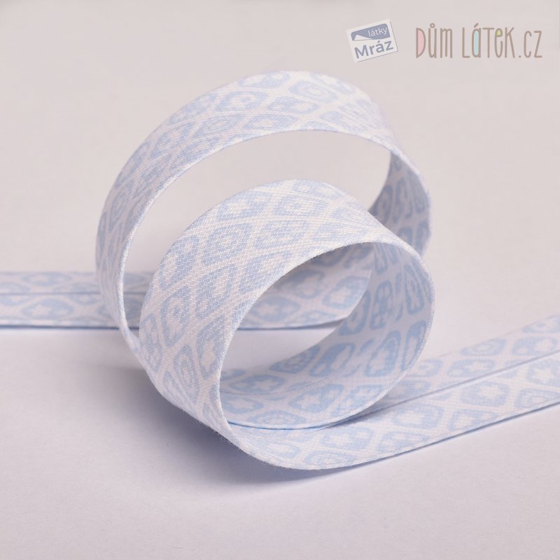 Proužek má šíři 30 mm, po přeložení a našití proužku je jeho šíře 15 mm.