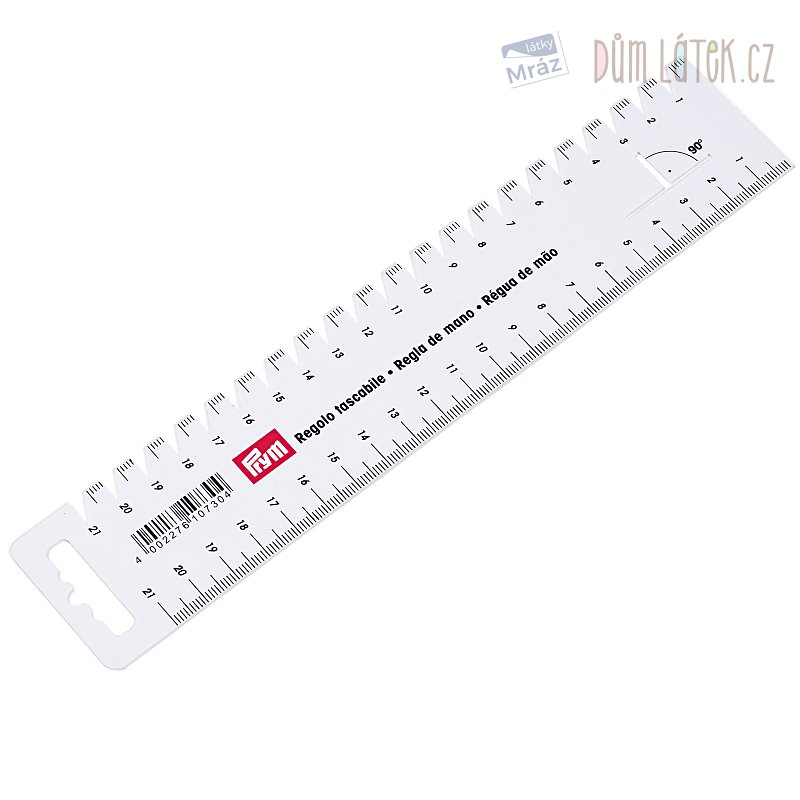 Ruční plastové pravítko MAXI pro krejčovské účely. Škála 21 cm.