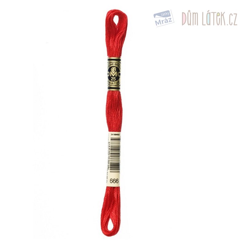 Vyšívací příze - mulinka DMC šestivláknová. Délka návinu 8 m, odstín 666.