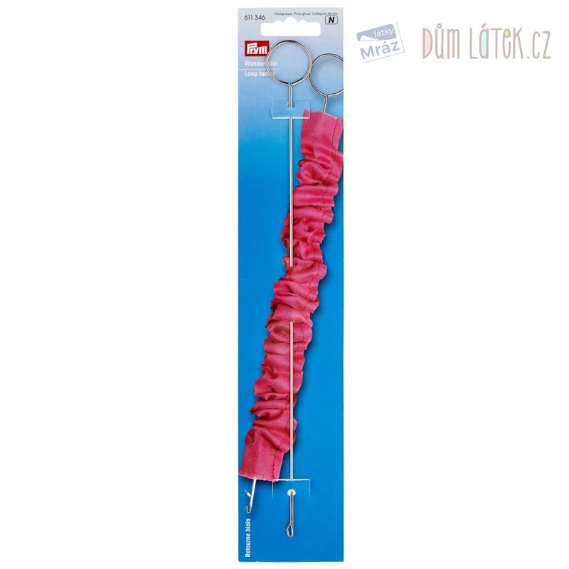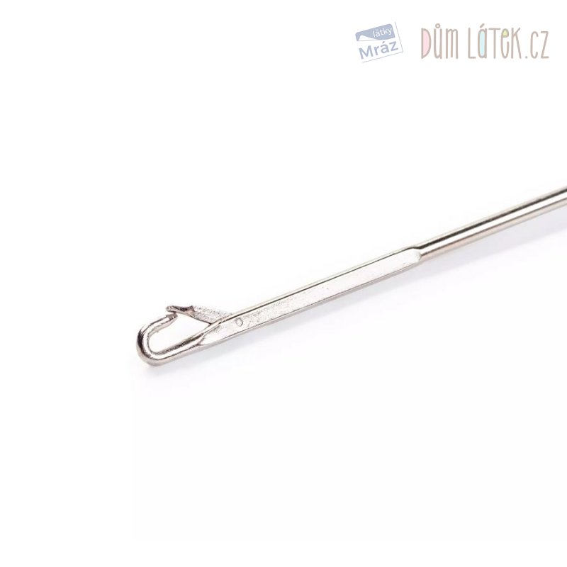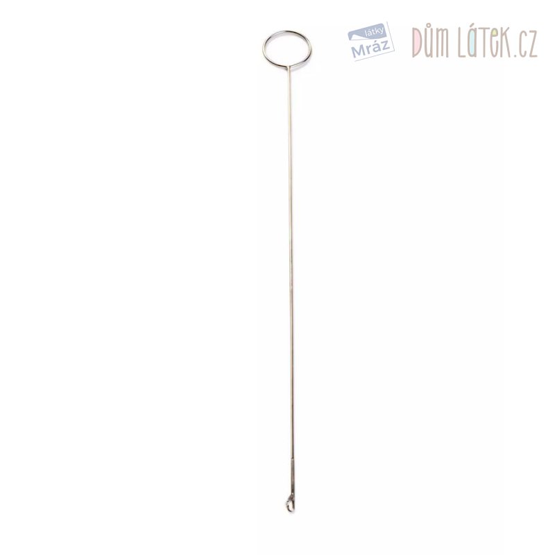 24 cm dlouhá ocelová jehla s očkem na prsty a háčkem pro snadné obracení látkových dutinek.