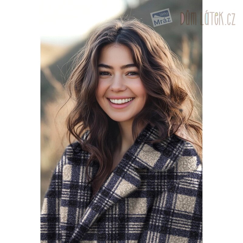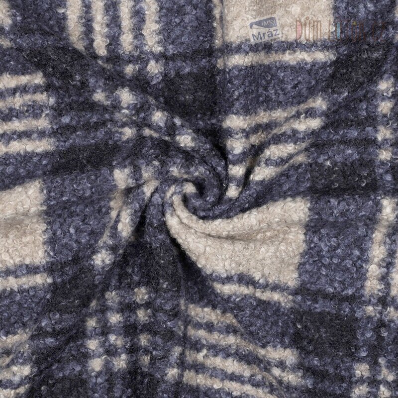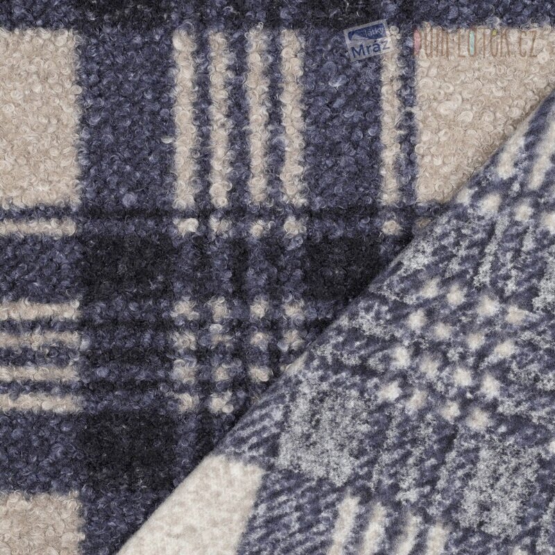 Kostkovaná plášťová lehce pružná látka buklé. Příjemný a hřejivý pletený materiál s malými smyčkami na povrchu.