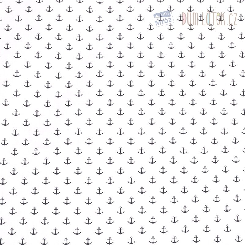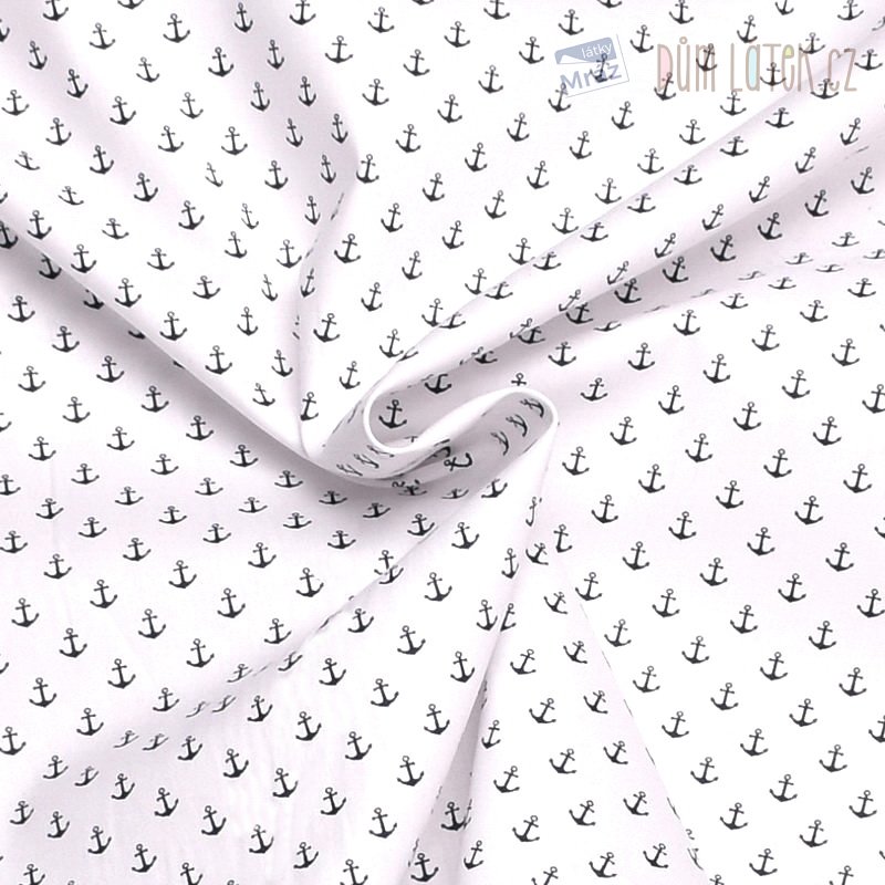 Bavlněný popelín s kotvami, bílý