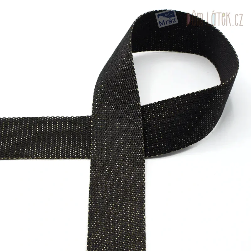 Popruh černý se zlatým metalickým vláknem, šíře 40 mm