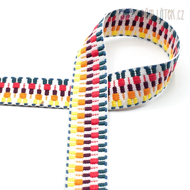 Použití: Popruh se skvěle hodí na výrobu tašek, batohů, ledvinek, popruhů přes rameno, opasků nebo různých doplňků. Protkávaná vazba mu dodává zajímavý vzhled a zároveň zajišťuje vysokou pevnost i při každodenním používání.