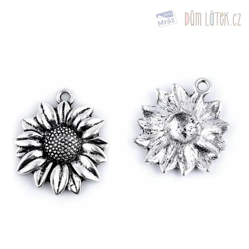 Přívěsek s květem slunečnice má kulatý tvar, je jednostranný. Je vhodný i jako ozdoba na oděvy, tašky a kabelky.