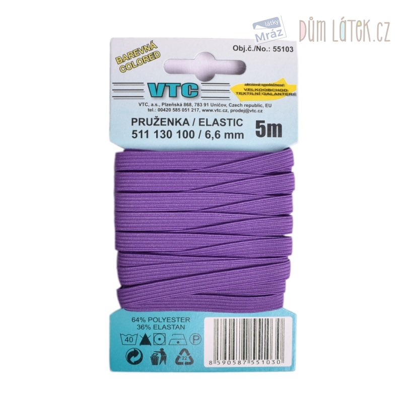 Guma neboli pruženka se používá na lemování okrajů u spodního prádla nebo k navlečení gumy do dětských tepláčků. Na jedné kartě je navinuto 5 m.