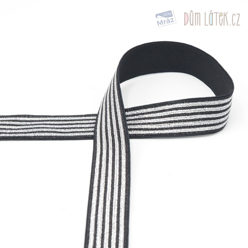 Pruženka se stříbrnými třpytivými pruhy, šíře 25 mm