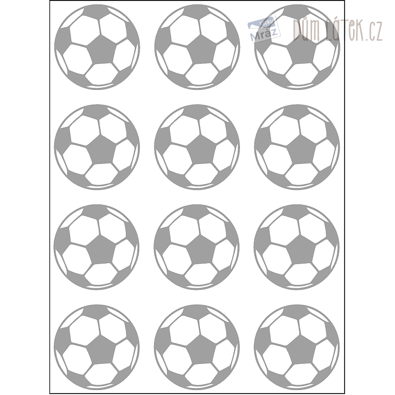 Toto balení obsahuje 12 ks nažehlovacích reflexních aplikací. Velikost jednoho fotbalového míče je cca 2,5 x 2,5 cm.