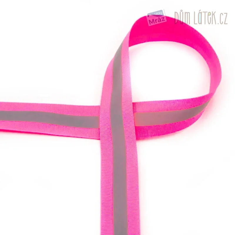 Reflexní páska našívací 25 mm neonově růžová
