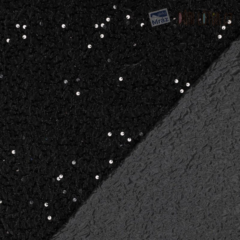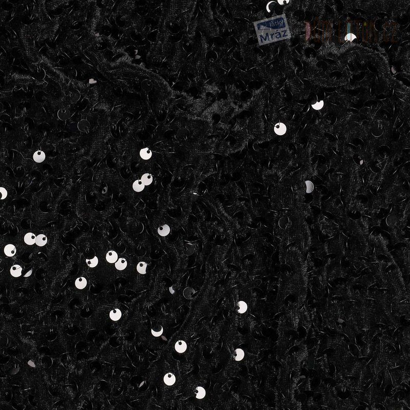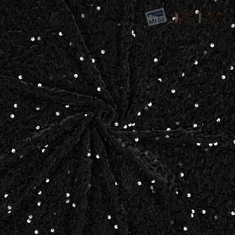 Sametový úplet s flitry, mačkaný, černý