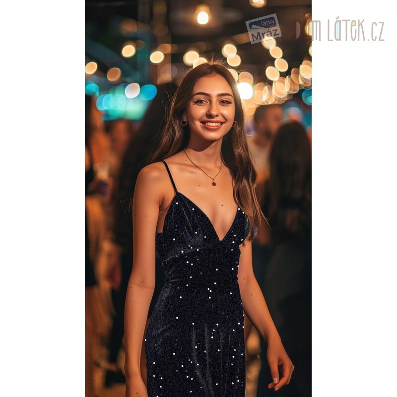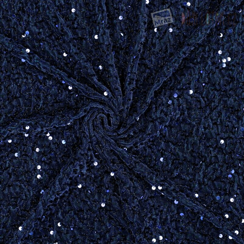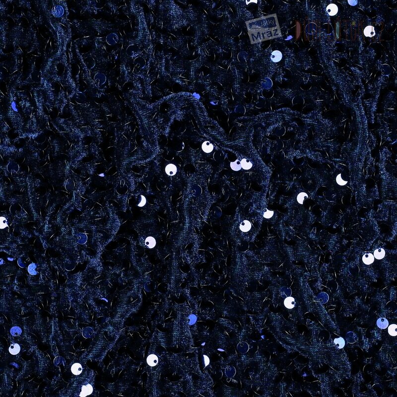 Sametový úplet s flitry, mačkaný, tmavě modrý