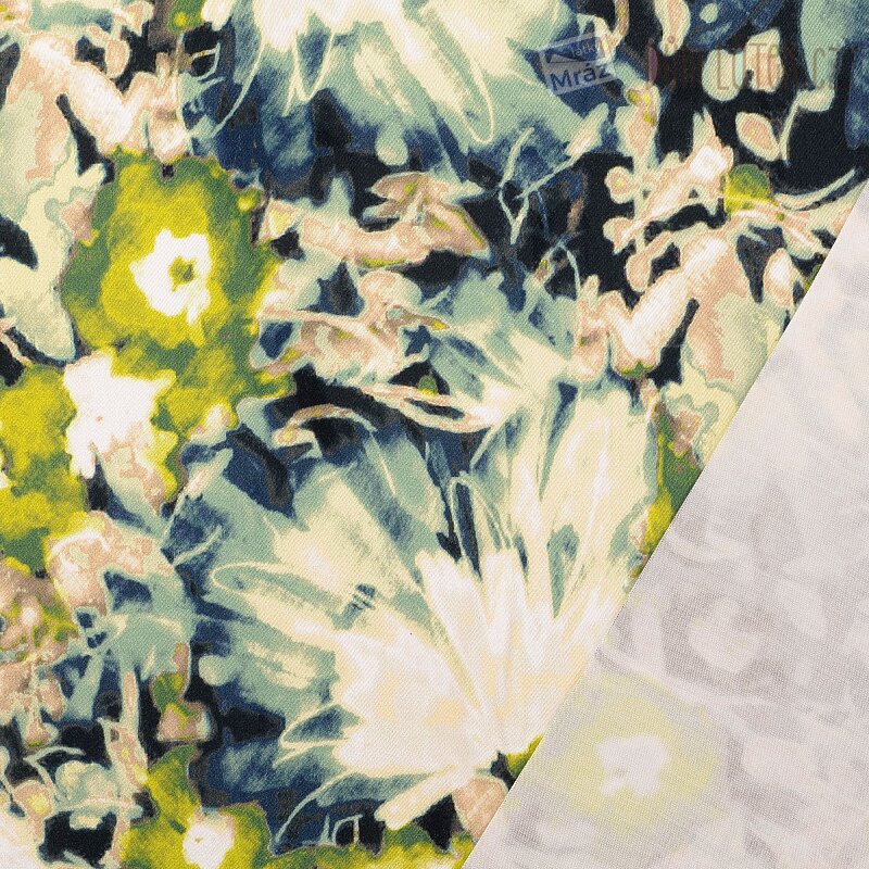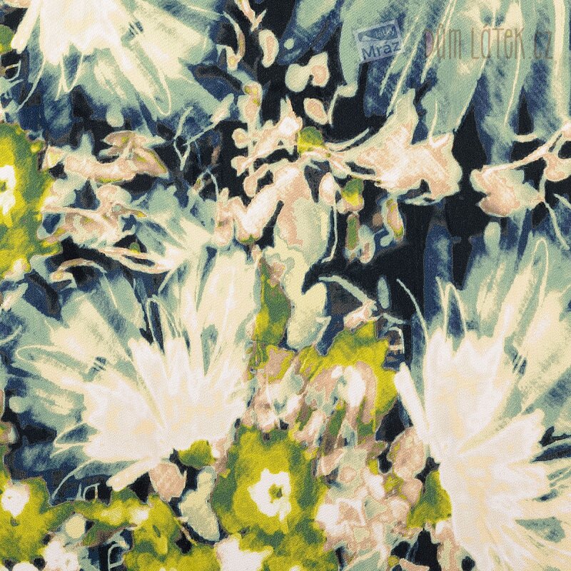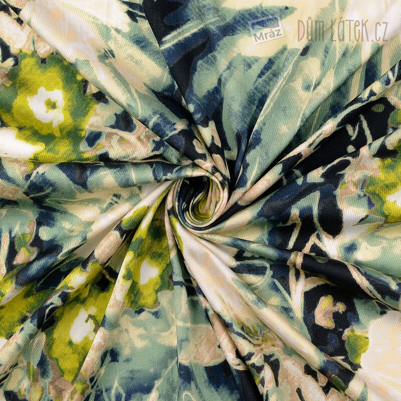 Satén viskózový s rostlinami, digitální tisk