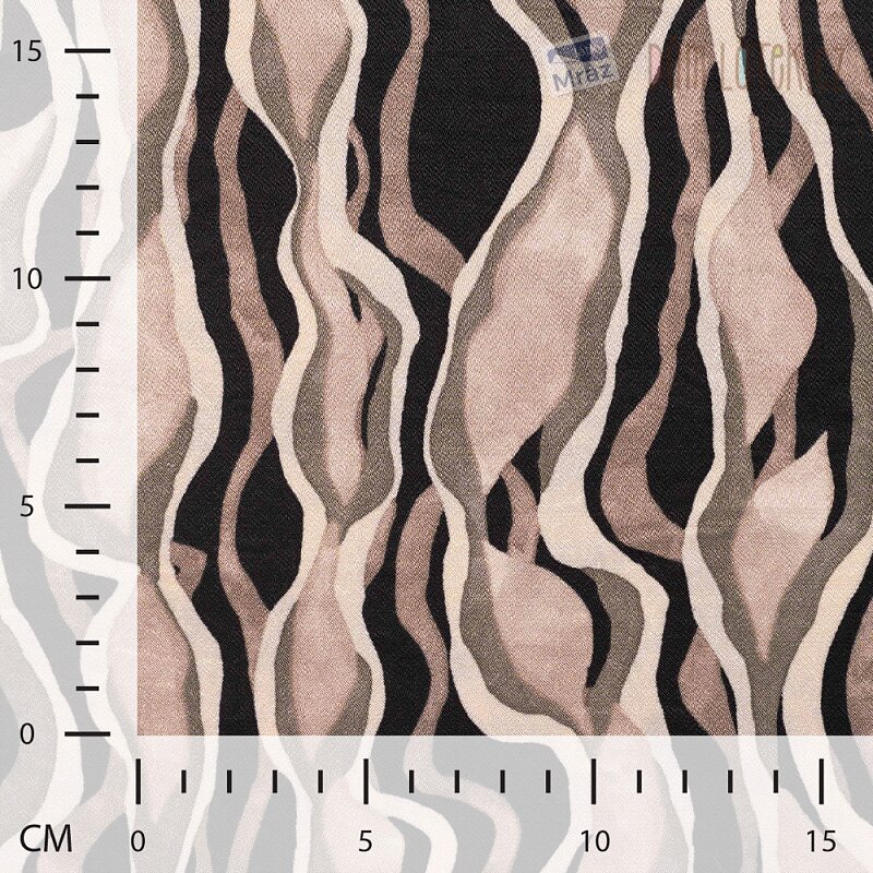 Jemný a na omak velice hladký a příjemný materiál se vzorem. Lehká a splývavá látka je ideální na halenky, šaty, kalhoty či sukně.