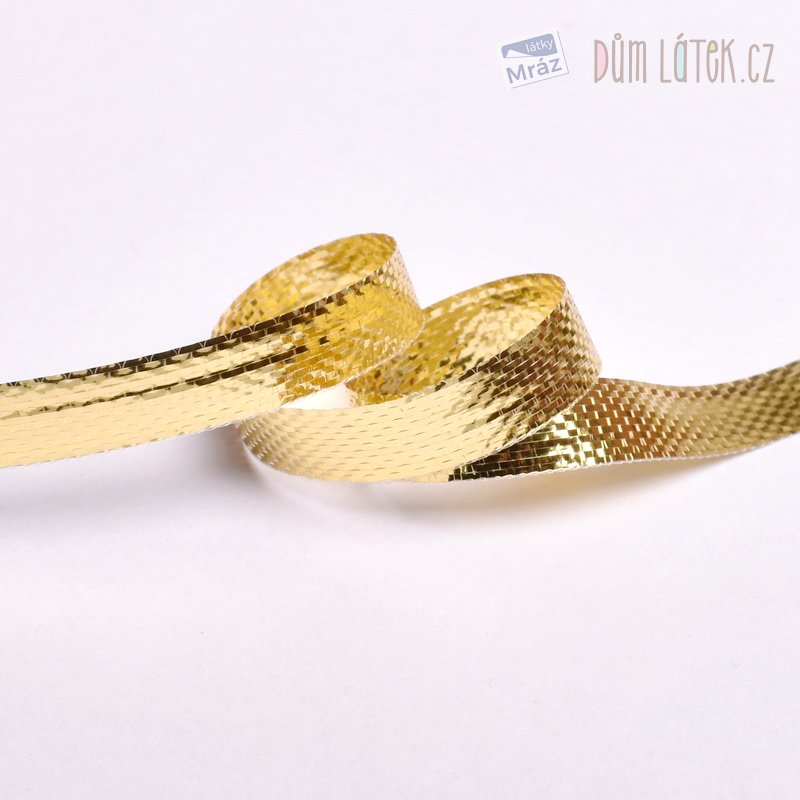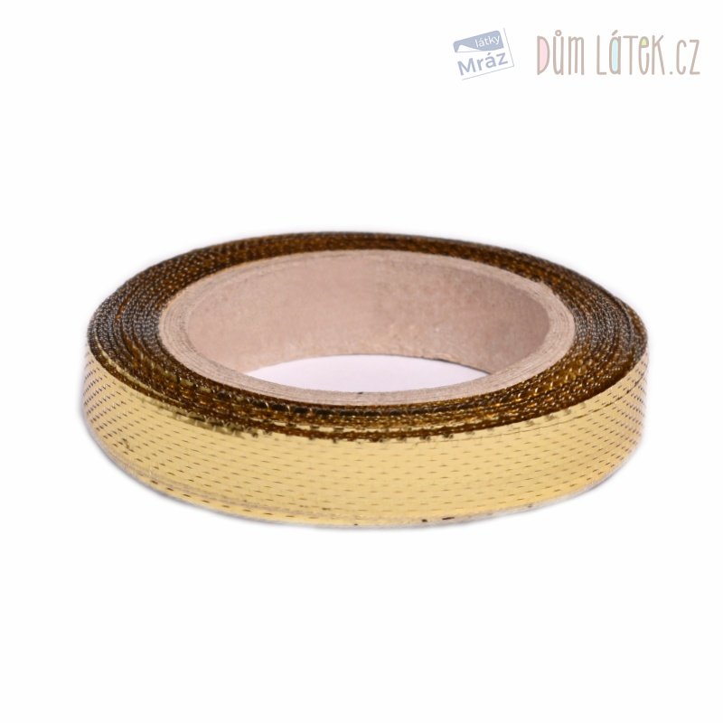 Stuha o šířce 11 mm ze zlatých rexorových pásků - vysoce lesklá a třpytivá.