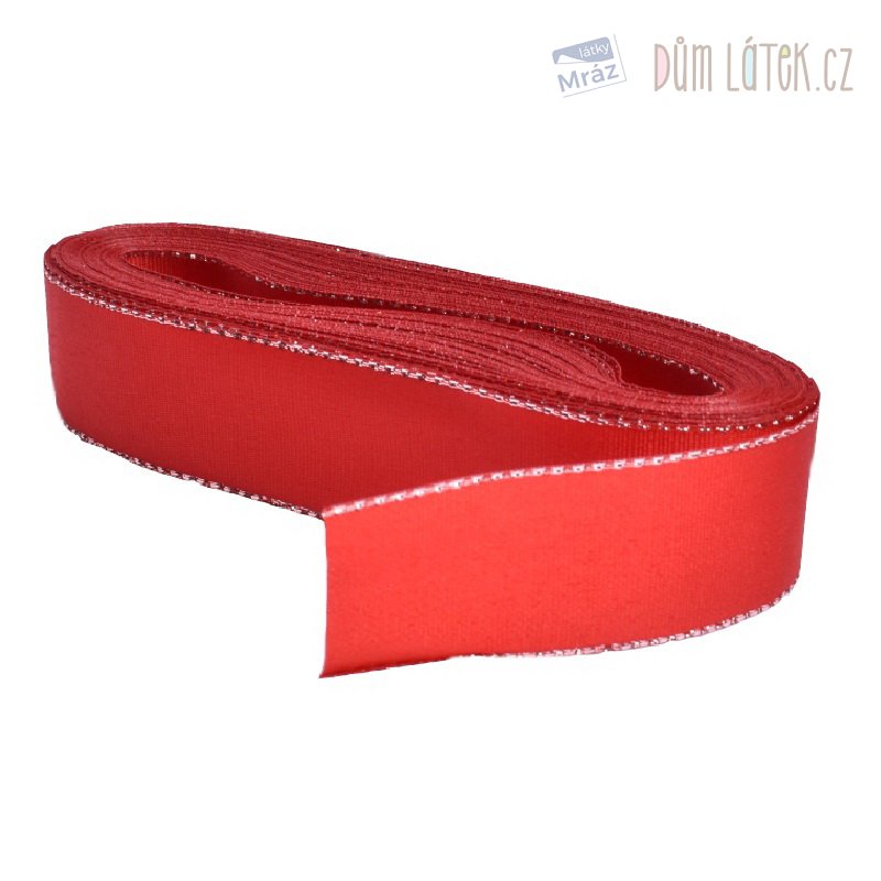 Taftová stuha o šířce 25mm se zlatým lurexovým okrajem. Jedná se o kvalitní český výrobek.