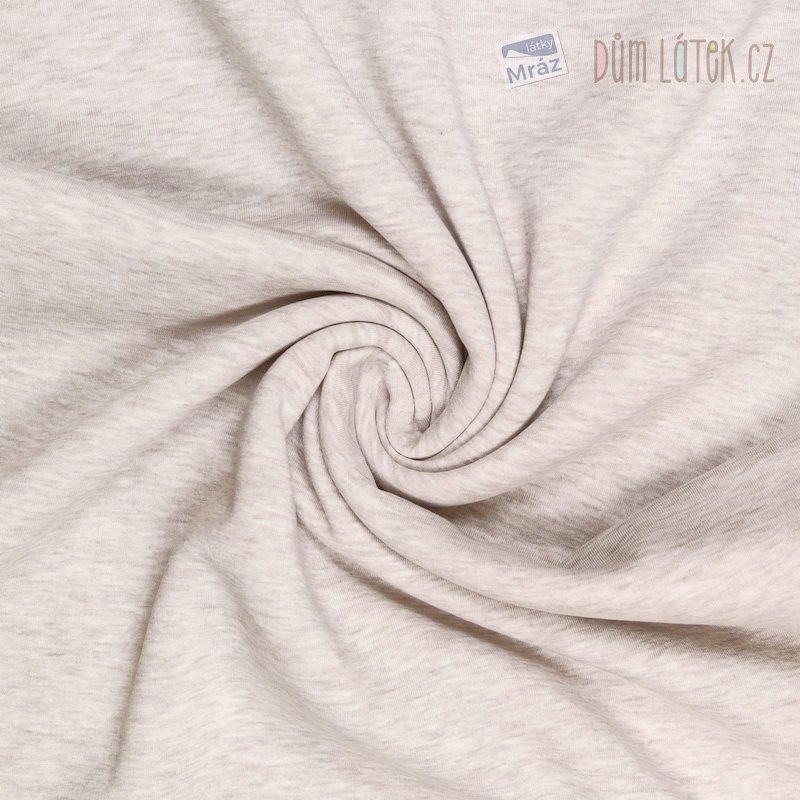 Příjemná teplákovina v béžové barvě je velice měkká, hřejivá a pružná.