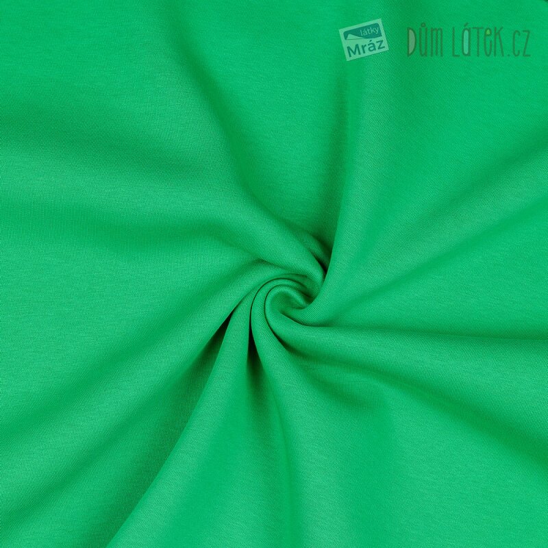 Příjemná teplákovina v jablečně zelené barvě, je velice měkká, hřejivá a pružná.