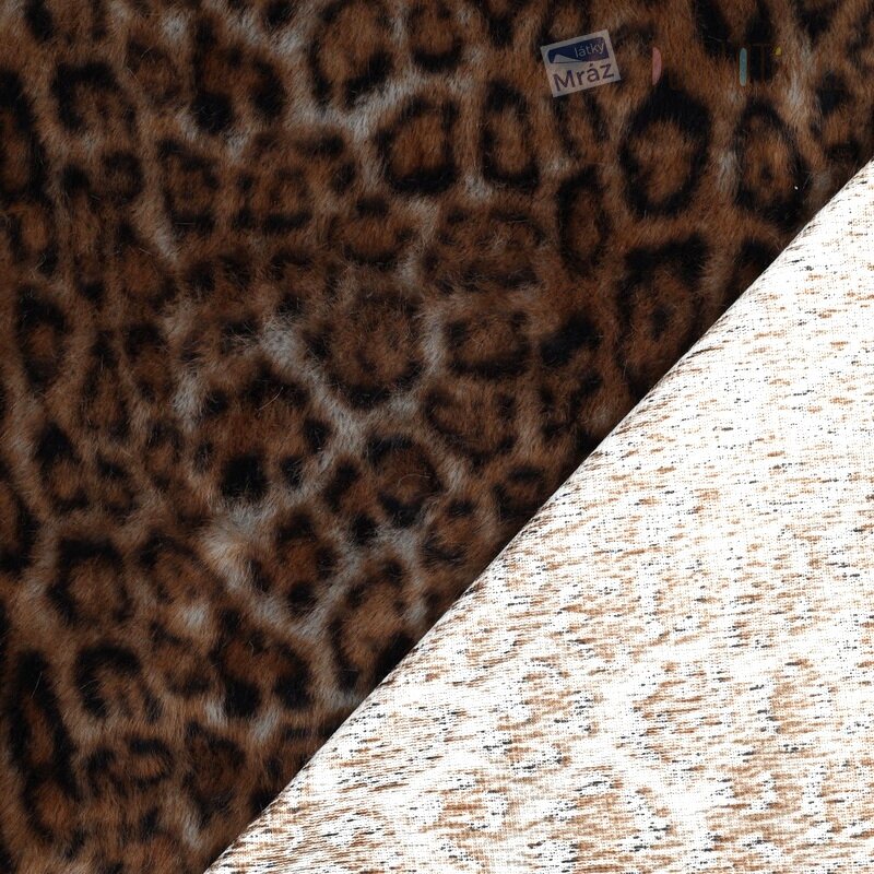 Krásná umělá kožešina se zvířecím vzorem. Velmi hebká a příjemná na omak. Rub látky tvoří lehce pružný úplet. Délka chlupu cca 1 cm.