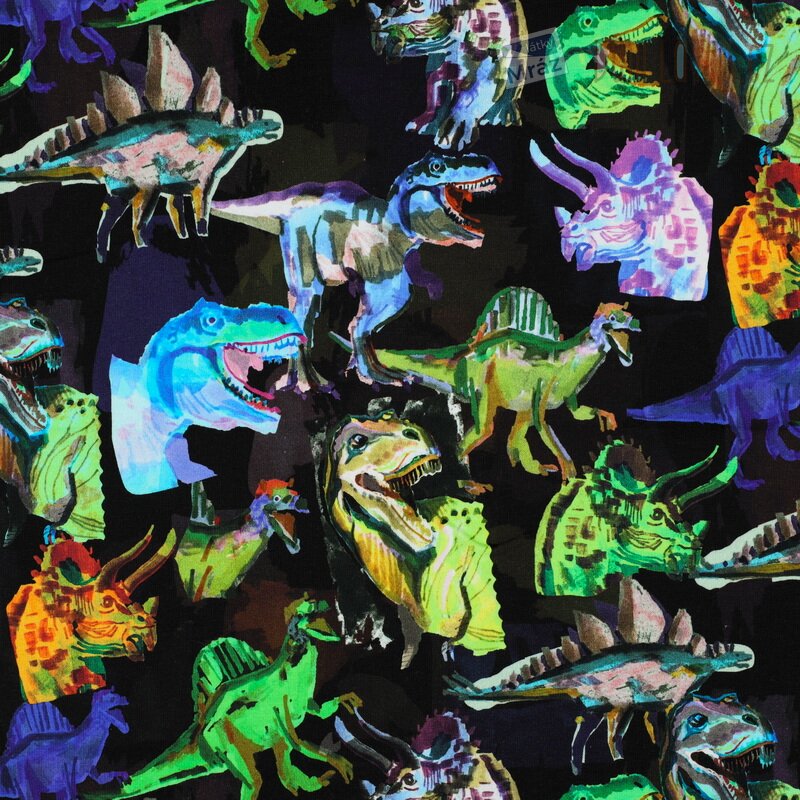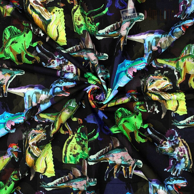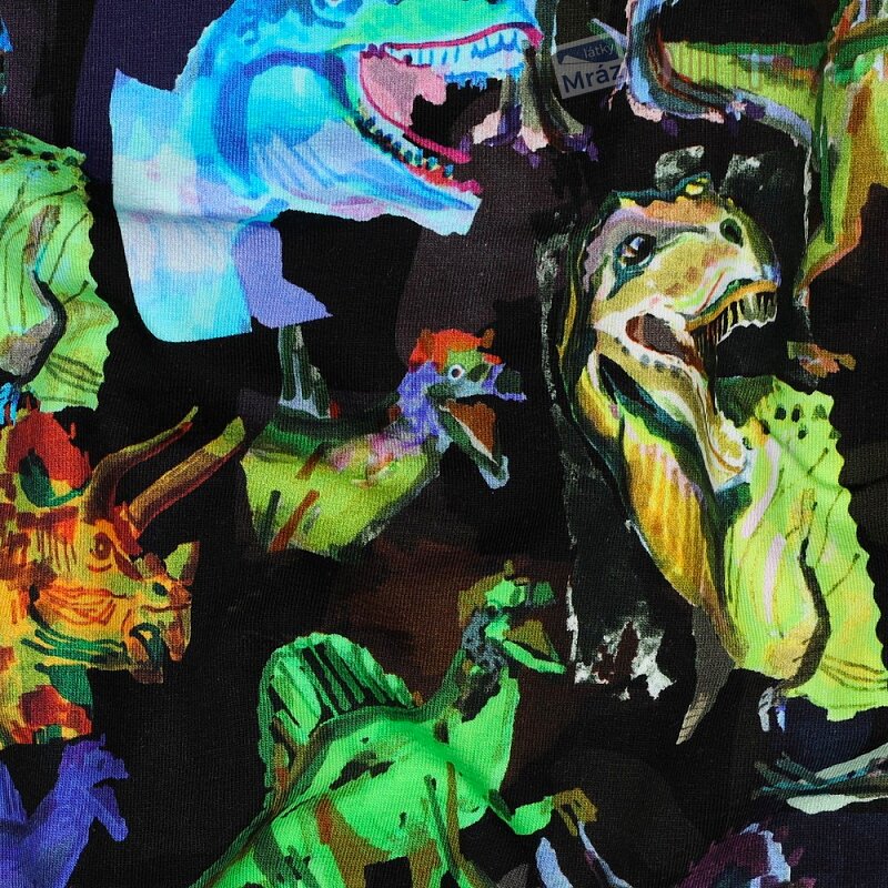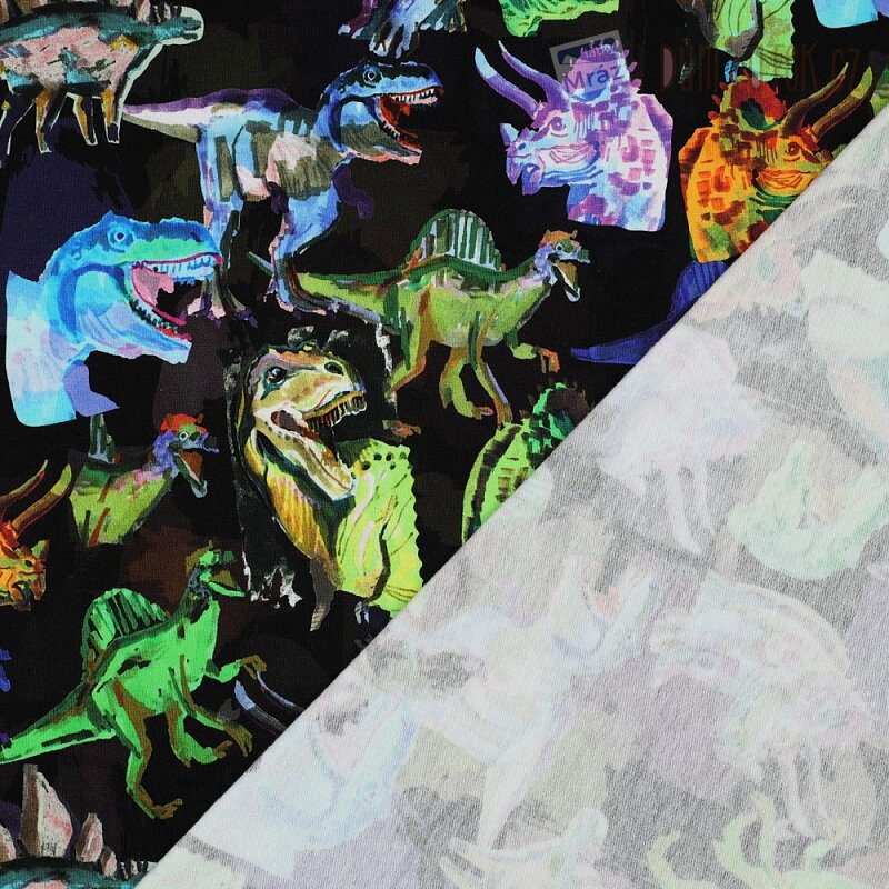 Úplet French Terry počesaný s dinosaury, digitální tisk