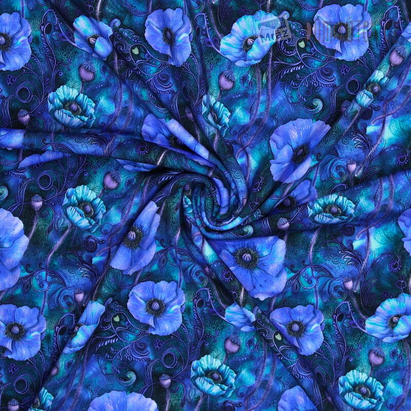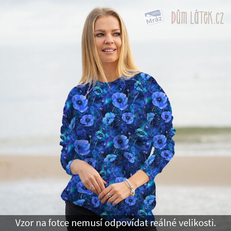 Úplet French Terry počesaný s květy, digitální tisk