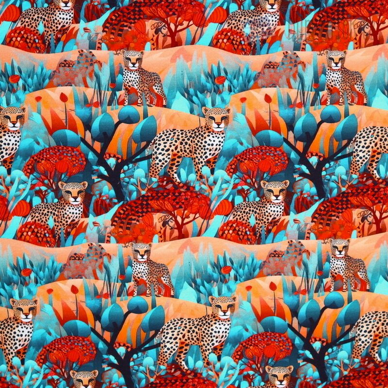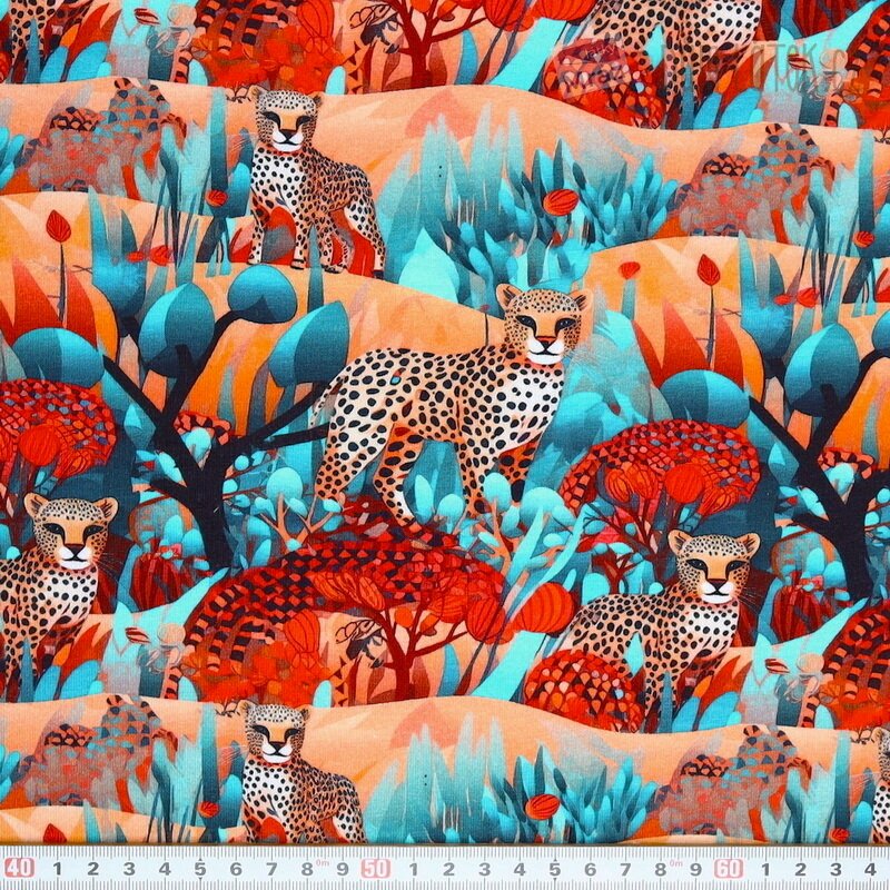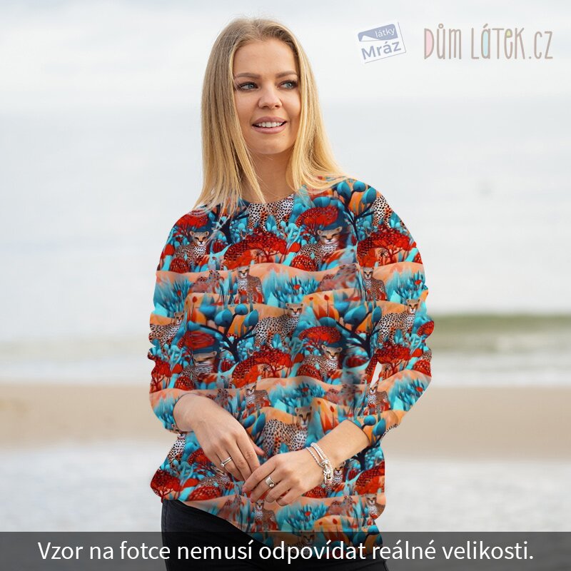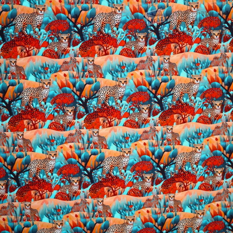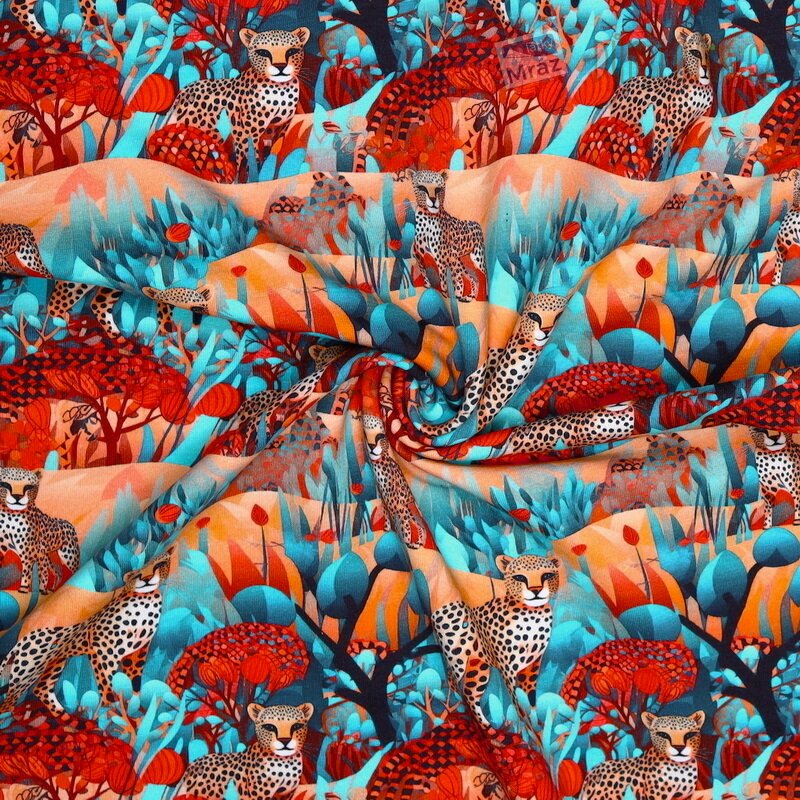 Úplet French Terry počesaný s leopardy, digitální tisk