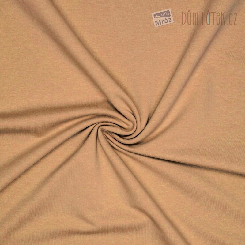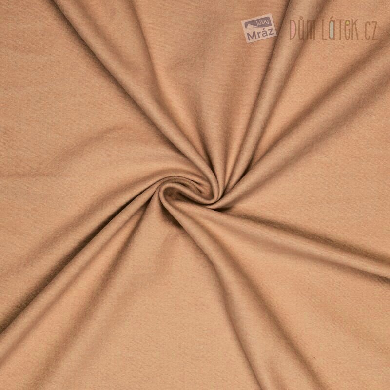 Krásný a měkký úplet French Terry počesaný světle hnědý. Rub látky tvoří tzv. "obloučky", které jsou specifické pro tuto látku.