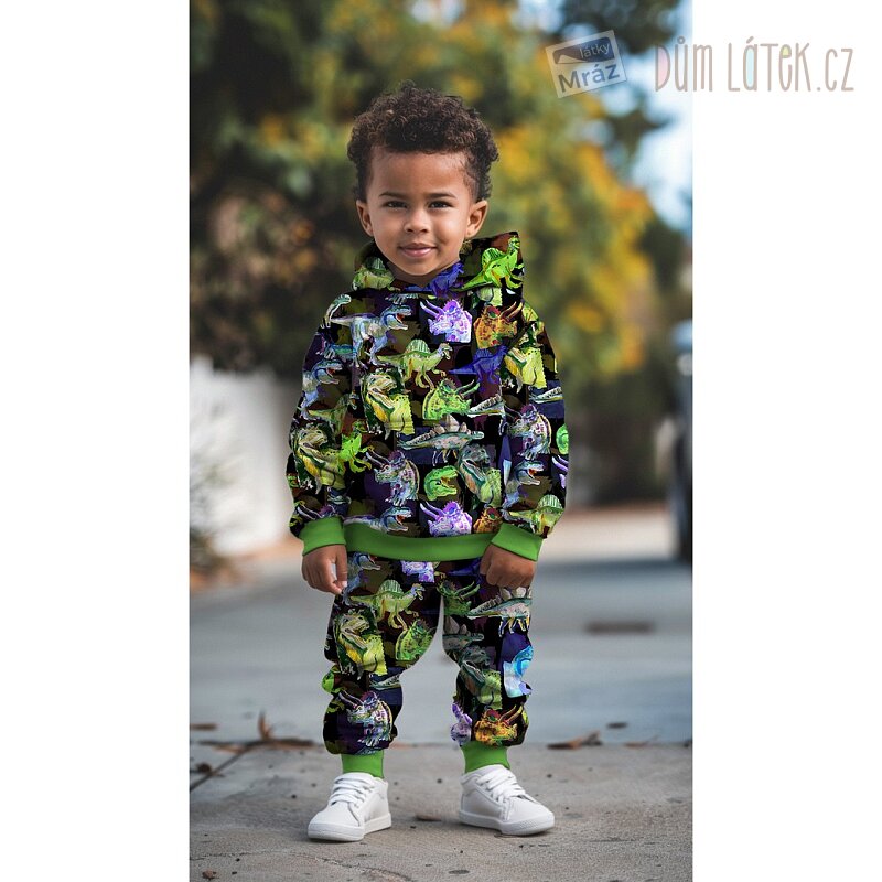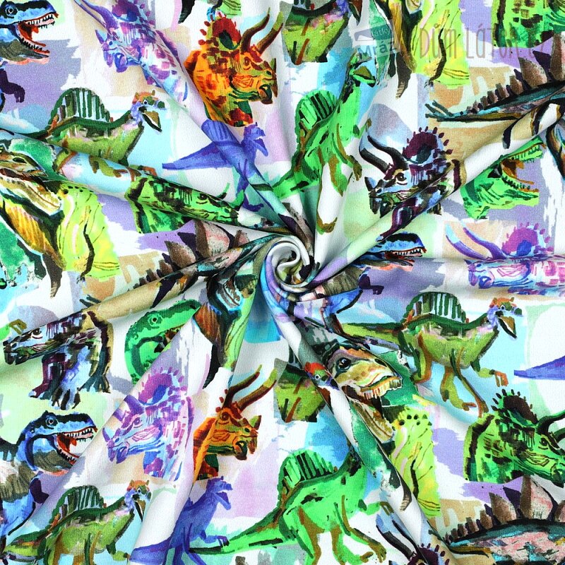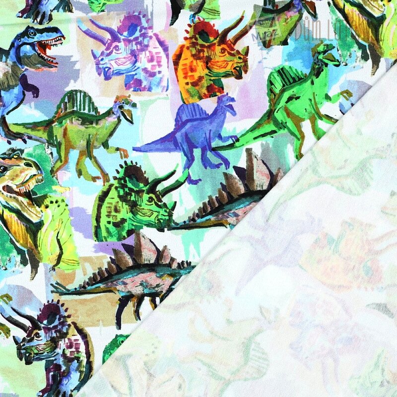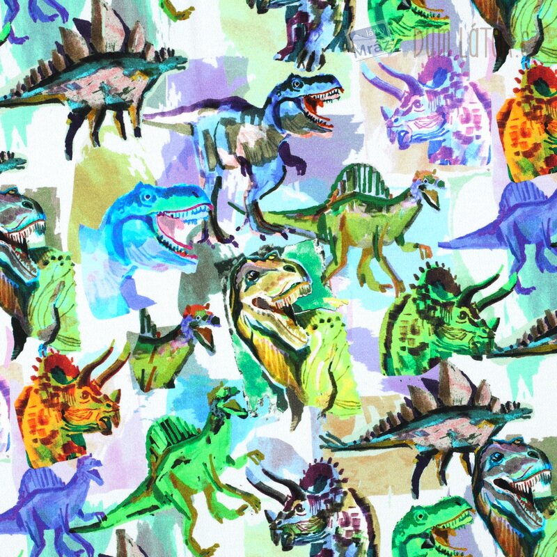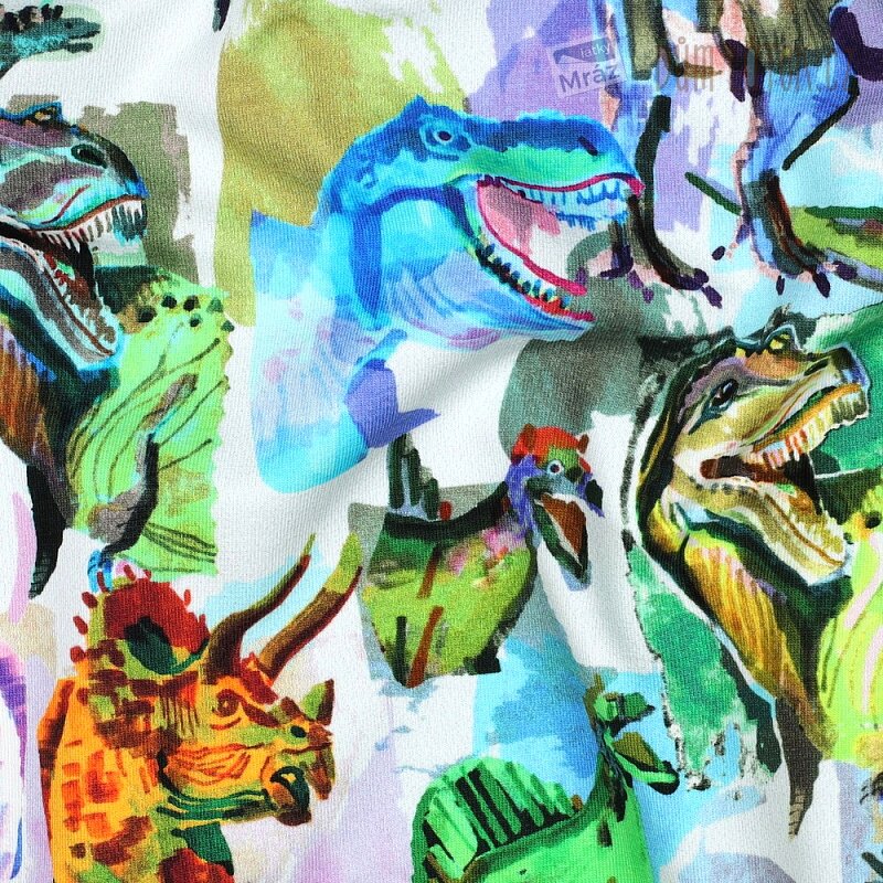 Úplet French Terry počesaný s dinosaury, digitální tisk