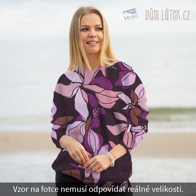 Úplet French Terry počesaný s květy, digitální tisk
