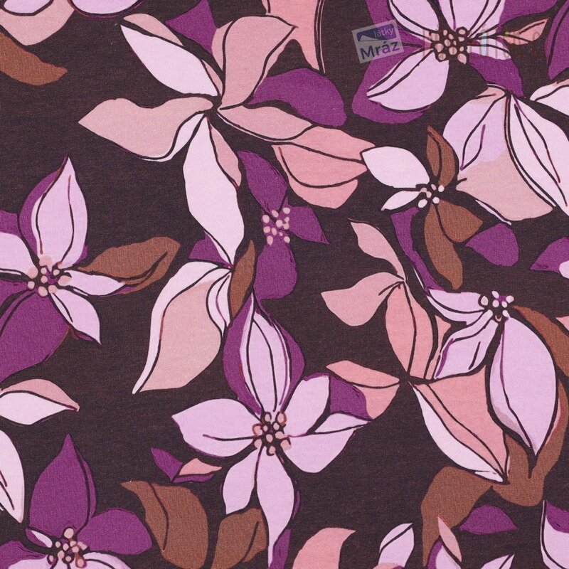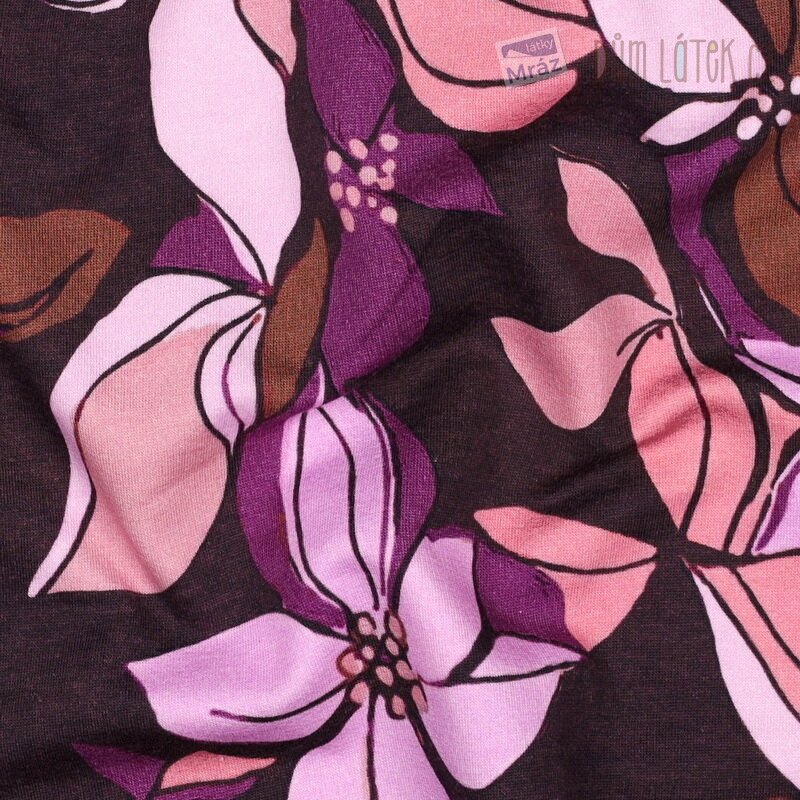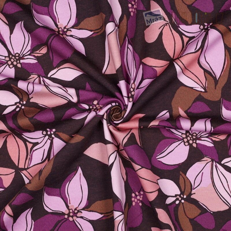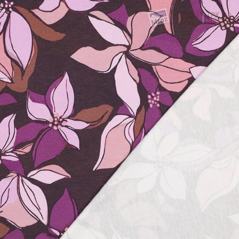 Krásný a měkký úplet French Terry s květy. Z rubu úpletu jsou specifické "obloučky", které mají počesaný chlup.