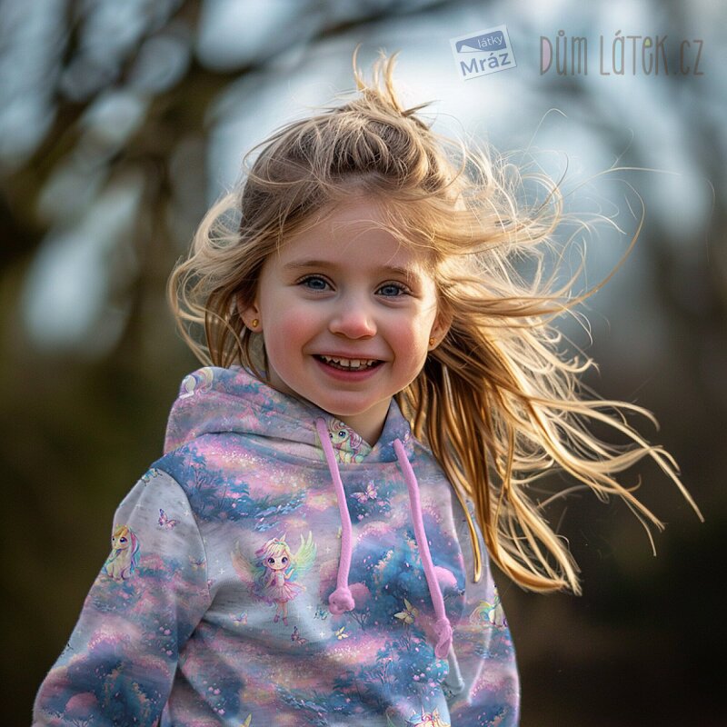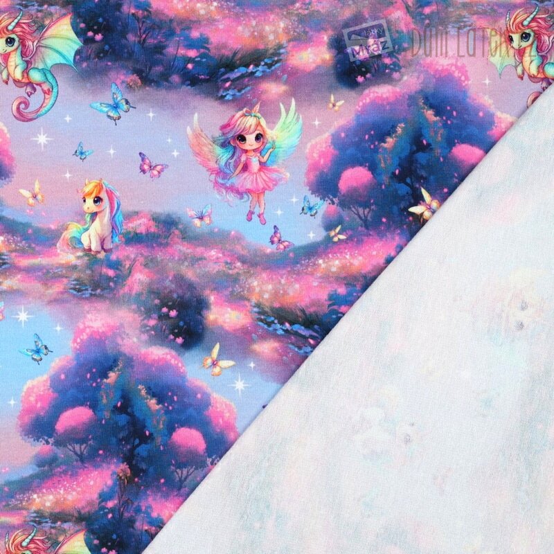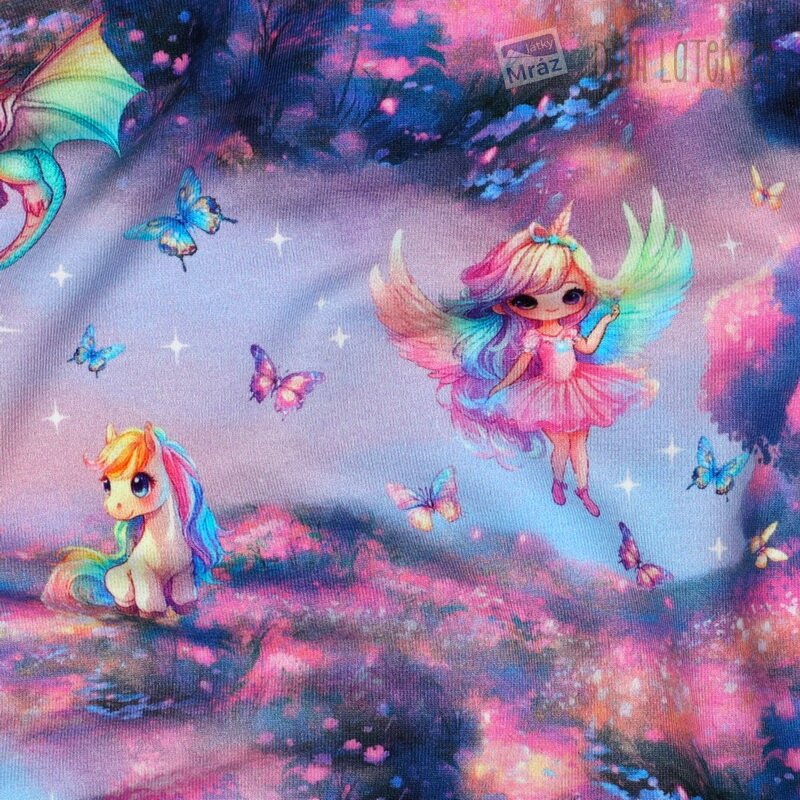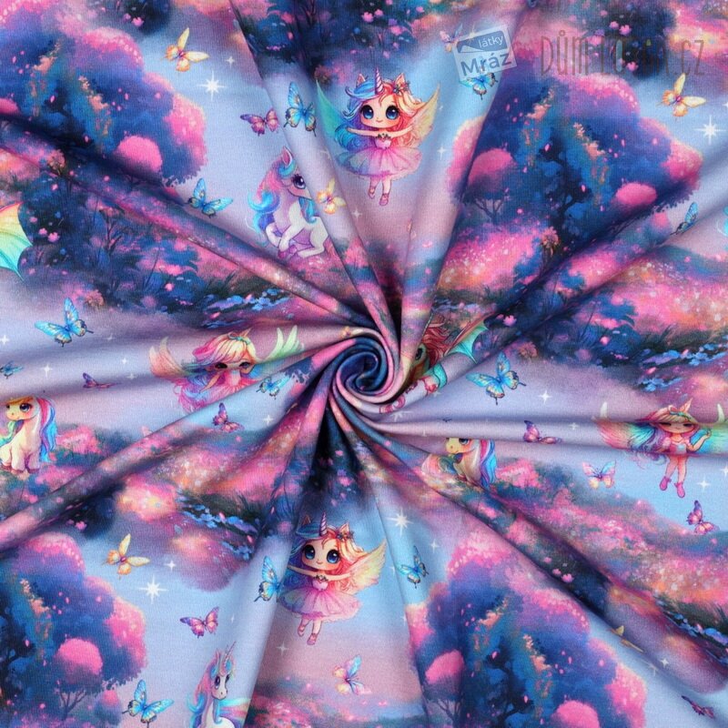 Úplet French Terry s vílou a jednorožcem, digitální tisk