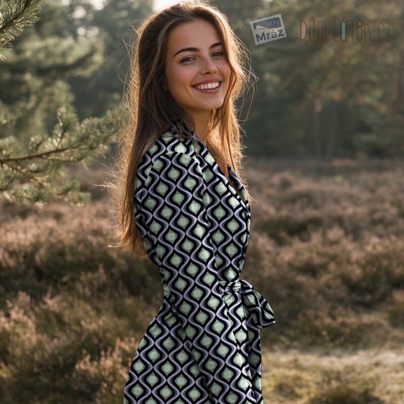 Díky své struktuře a vzhledu je ideální na elegantnější a pohodlné oděvy - sukně, šaty, topy, kalhoty nebo i lehké mikiny.