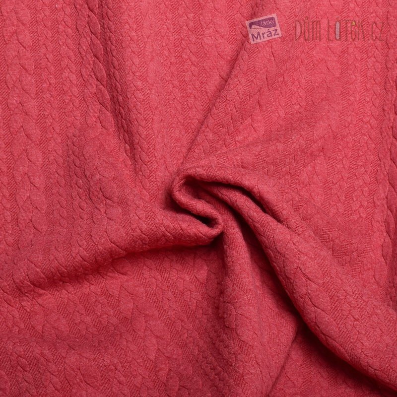 Krásný měkký dvojitý úplet ve světle červené barvě. Je pružný a díky své poddajnosti se s ním snadno pracuje.