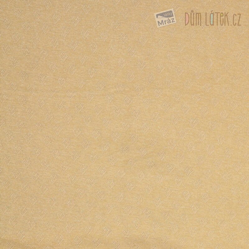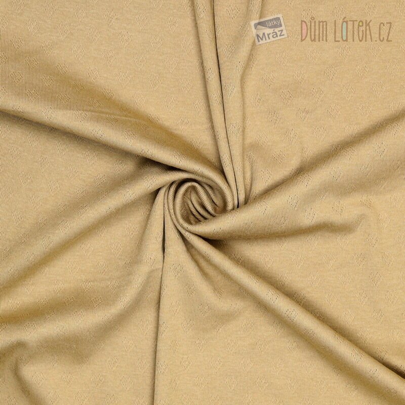 Velmi příjemný bavlněný úplet s jemným dírkováním ve tvaru srdíček. Je to pružný materiál, který se snadno přizpůsobí tvaru těla, aniž by omezoval v pohybu. Je také prodyšný a méně se mačká než klasická tkanina.
