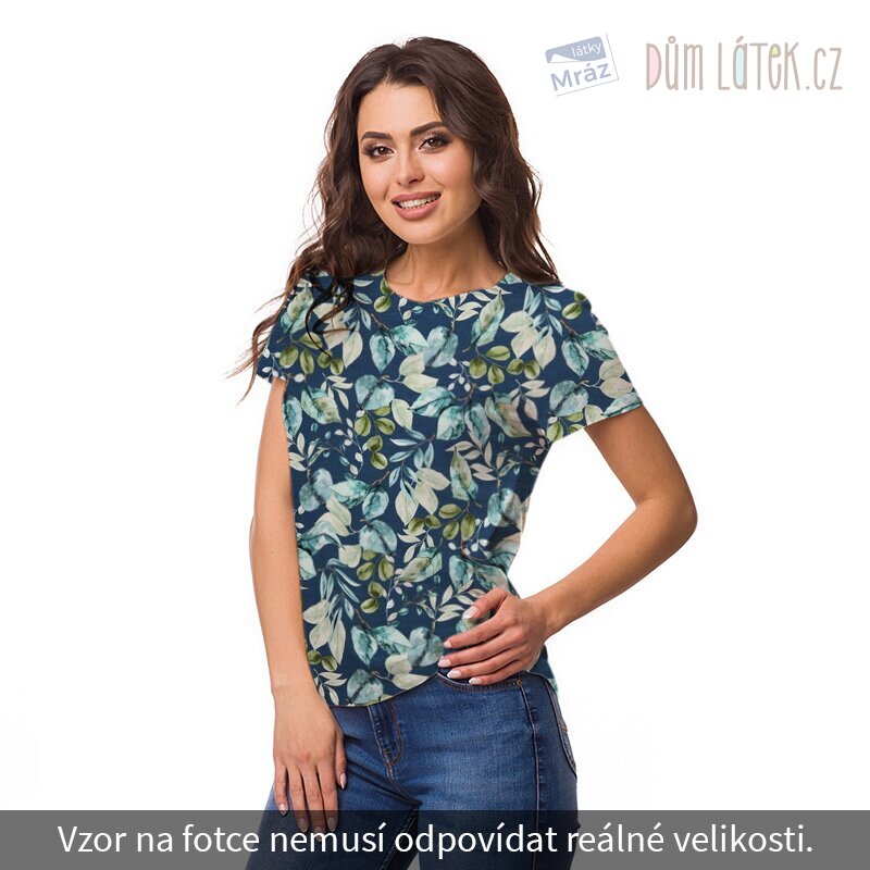 Krásný a příjemný úplet s listy. Látka je hladká a poddajná, proto se s ní snadno pracuje. Vhodný na trička, mikiny, šaty, legíny, čepice či jiný oděv.