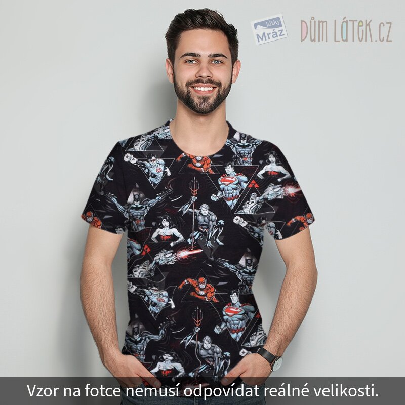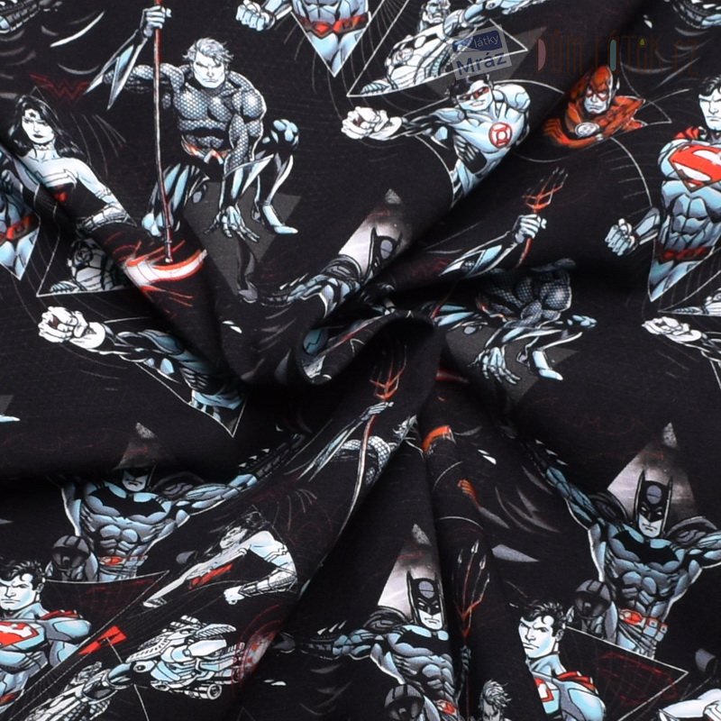 Krásný a příjemný bavlněný úplet s digitálním potiskem oblíbeného filmu Liga spravedlnosti. Látka je hladká a poddajná, tudíž se s ní snadno pracuje.
