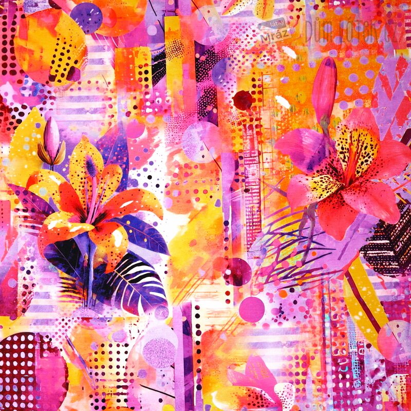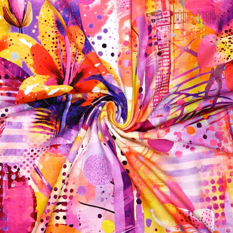 Úplet se vzorem a květy, digitální tisk