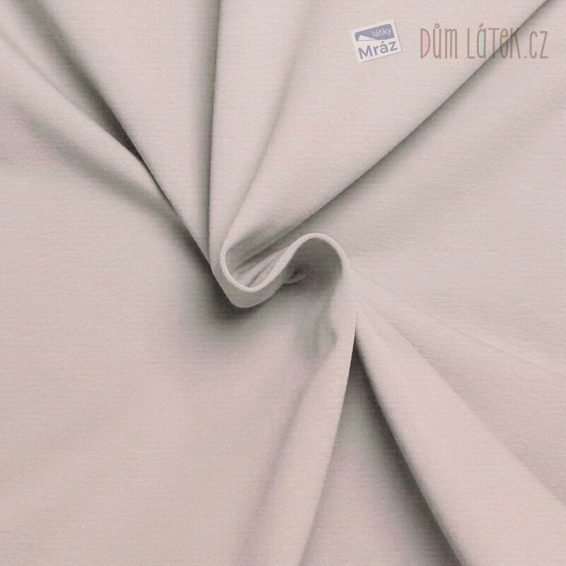 Velmi příjemný úplet v béžové barvě. Látka je hladká a poddajná, proto se s ní snadno pracuje. Úplet je vhodný na trička, šaty, legíny, čepice i dětský oděv.