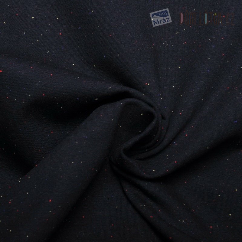 Velice měkká a příjemná teplákovina v černé barvě s barevnými nopky je hřejivá a pružná látka.