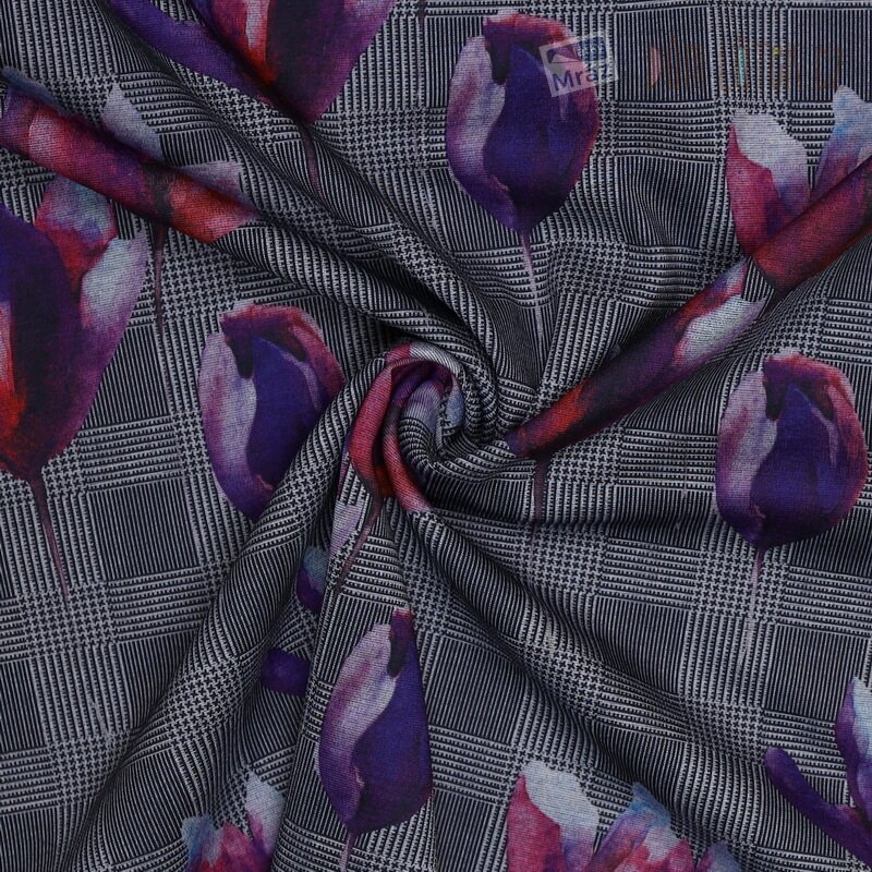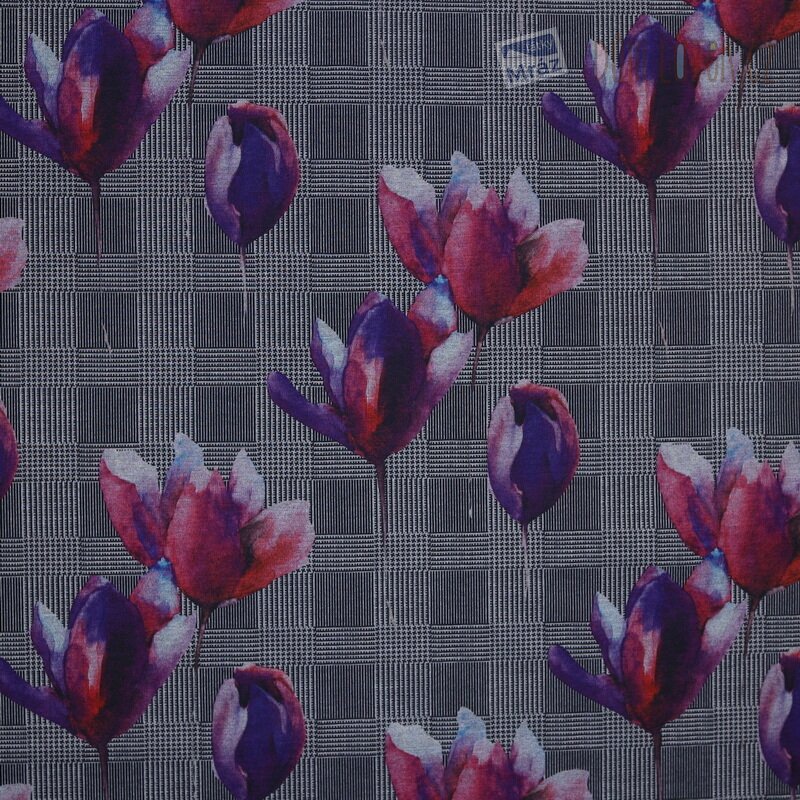Úplet silnější s květy. Je příjemný na omak, elastický a pevný.