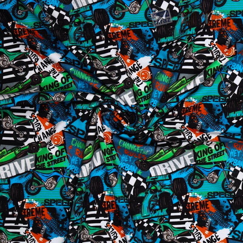 Krásný a příjemný úplet se vzorem. Látka je hladká a poddajná, proto se s ní snadno pracuje. Vhodný na trička, mikiny, šaty, legíny, čepice či jiný oděv.